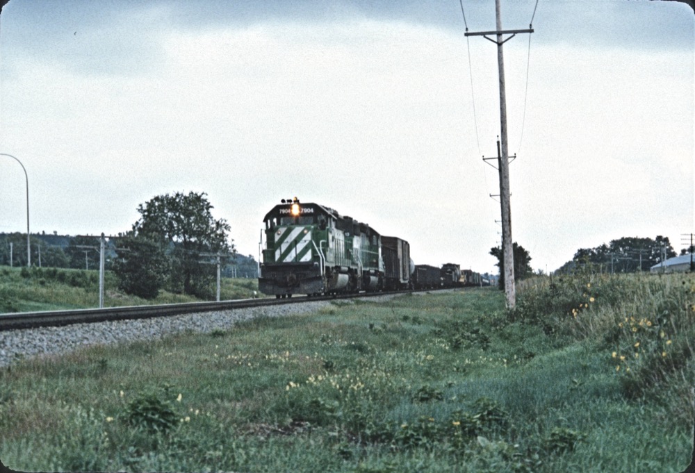 Burlington Northern Diesel Locomotives Number 7904 and Number 6713 with a Freight Manifest at Newport, Minnesota in 1980