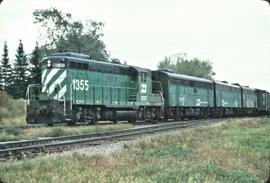 Burlington Northern Diesel Locomotives Numbers 8055, 6508, and 6425 in Dayton's Bluff, Minnesota in 1982