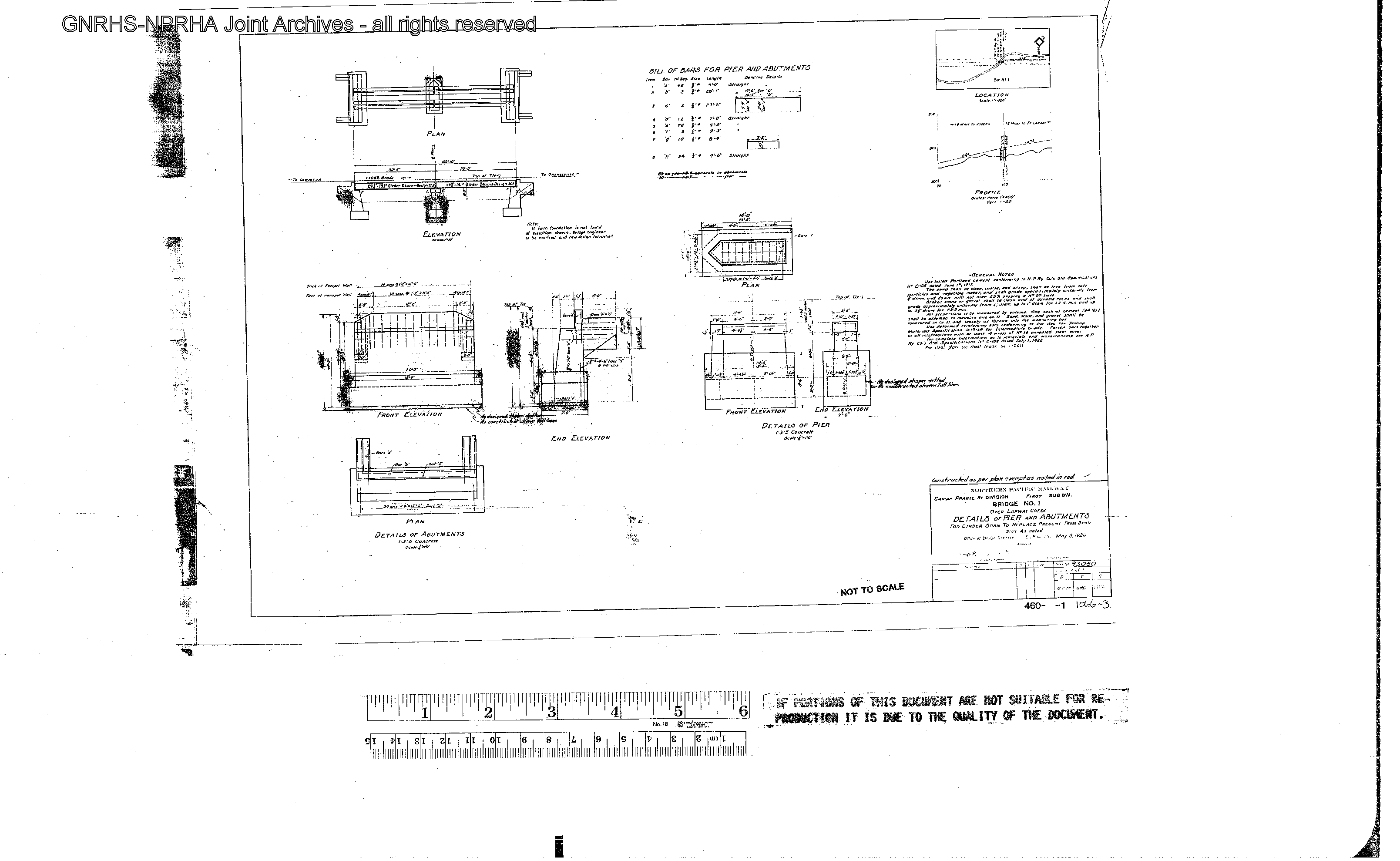 Camas Prairie Railroad Engineering Drawing: Detail of Pier/Abutment, Bridge 1 - Highway, south of Spalding, Idaho, Line Segment 460. Sheet 1066 - 3, undated.