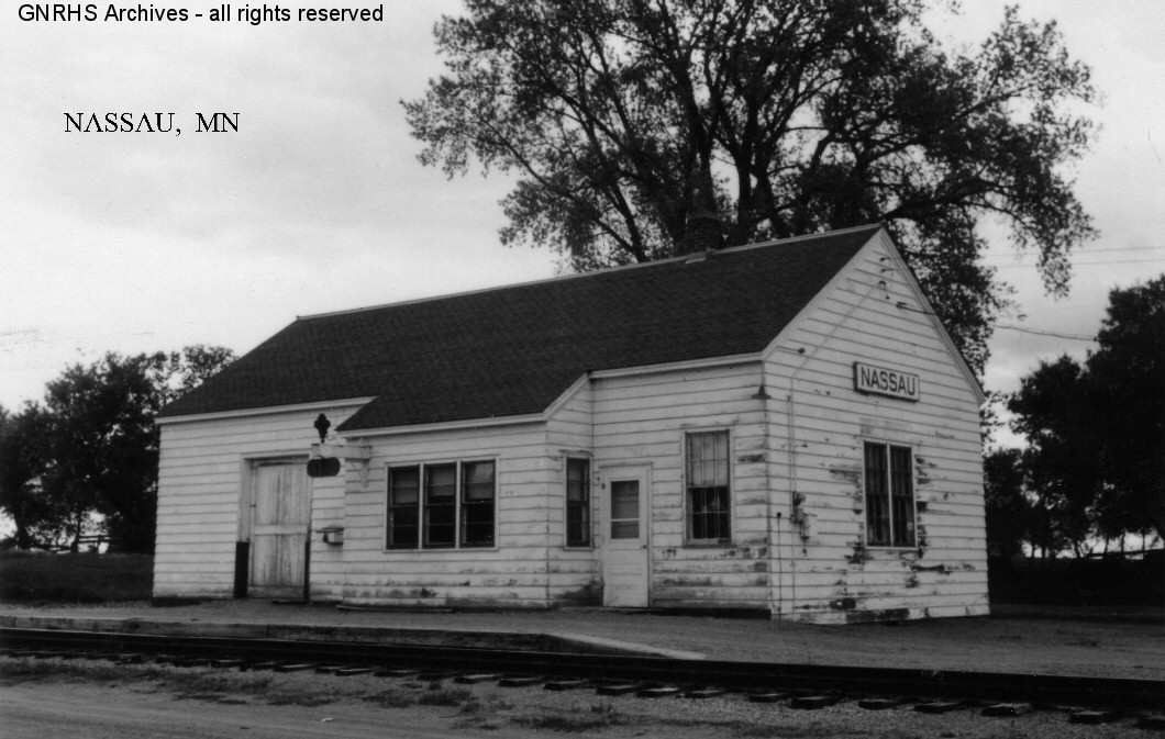 Great Northern depot at Nassau, Minnesota, undated. Photograph by Robert Johnston, from the Norm Keyes Collection.