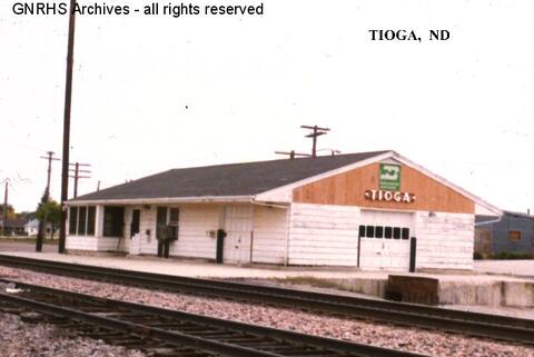 Great Northern depot at Tioga, North Dakota, undated. Photograph by Bradley, from the Norm Keyes Collection.