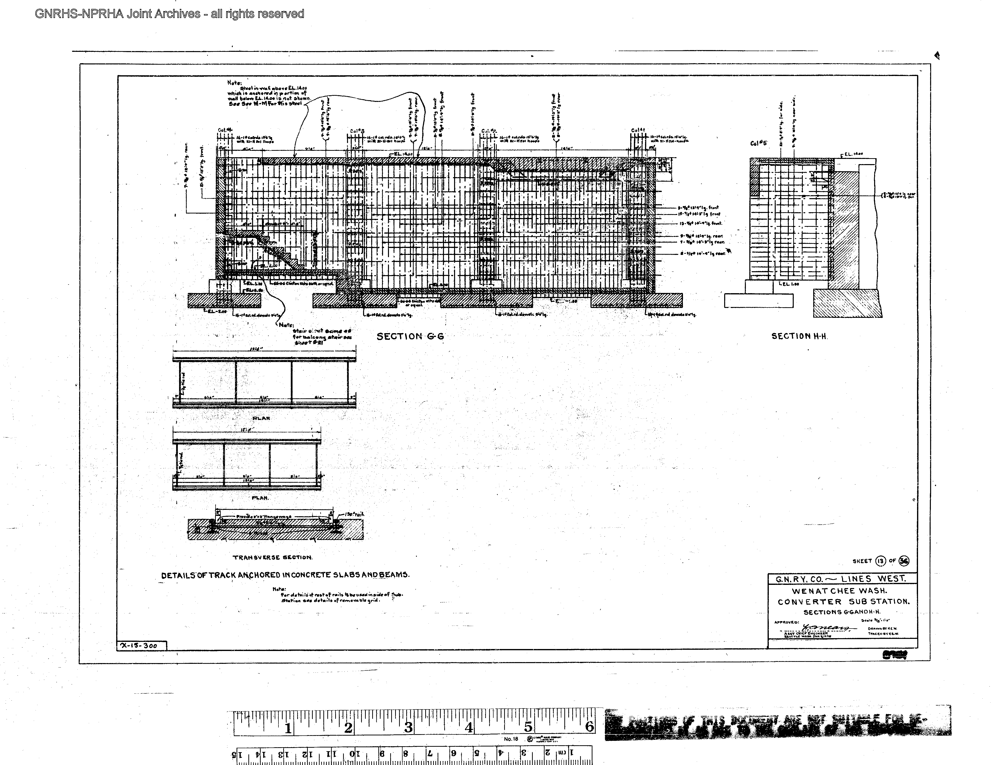 Great Northern Engineering Drawing: Converter Substation at Wenatchee, Washington, prepared in 1928. Burlington Northern File Number 8701-13, Reference Number 10101, Sheet 013035.