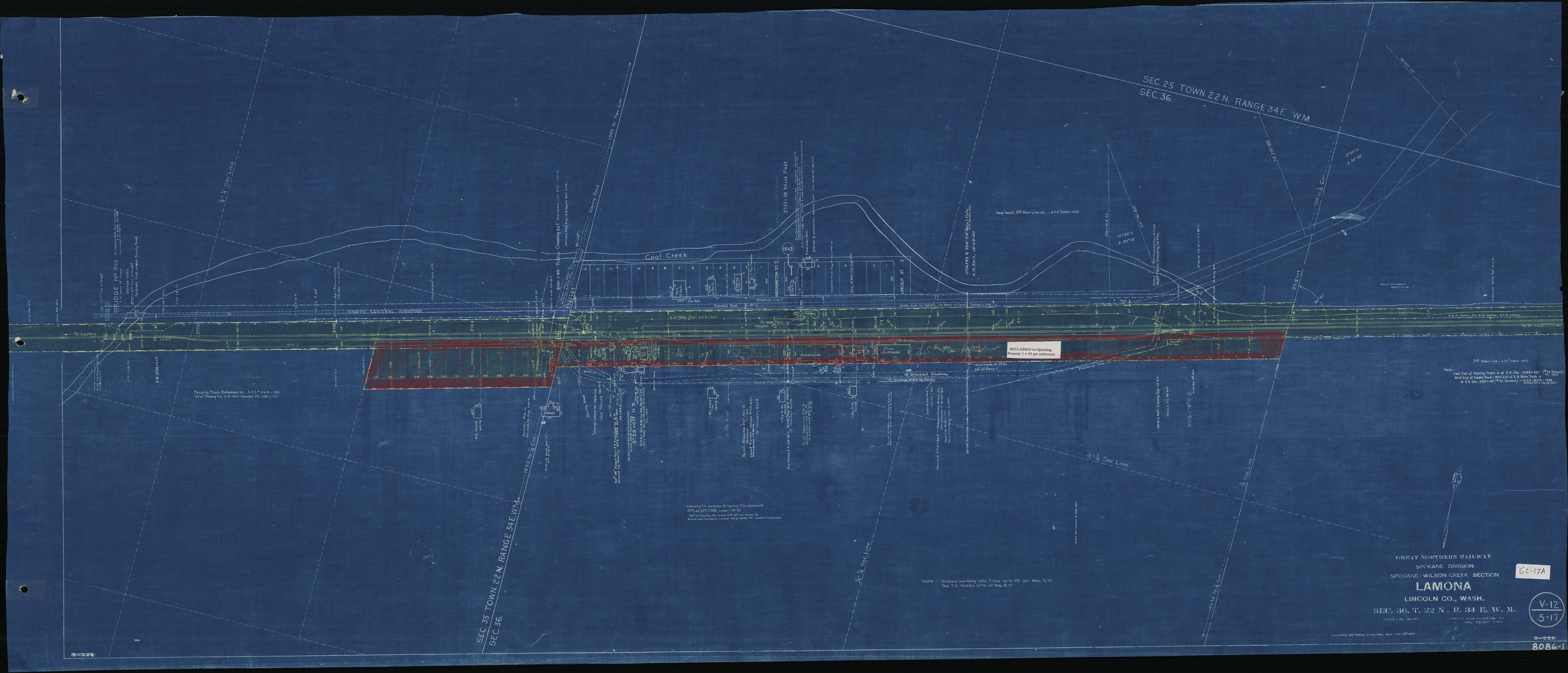 Great Northern Plat Map, Lamona, Washington. Milepost 1543, Great Northern Washington Volume 2 Map 17, undated.