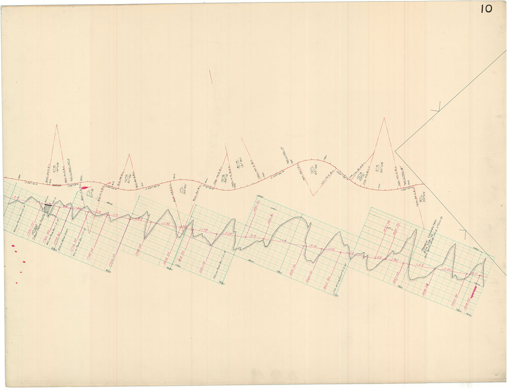 Great Northern Profile Map 10, Cascade Summit to Skykomish, Washington, 1894. Original drawings in this series are heavy cardboard with cloth backing. A.B. Wilse produced a rolled map from Stevens Pass summit to Skykomish - these seem to be the base drawings. From the Great Northern Railway Historical Society Archive at the Jackson Street Roundhouse, Saint Paul, Minnesota.