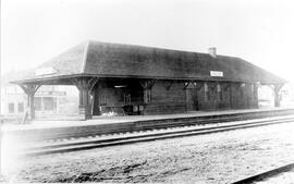Mound, Minnesota Depot, street side view, waiting room end, wooden construction, Great Northern, Warner B. Swarner photo, undated