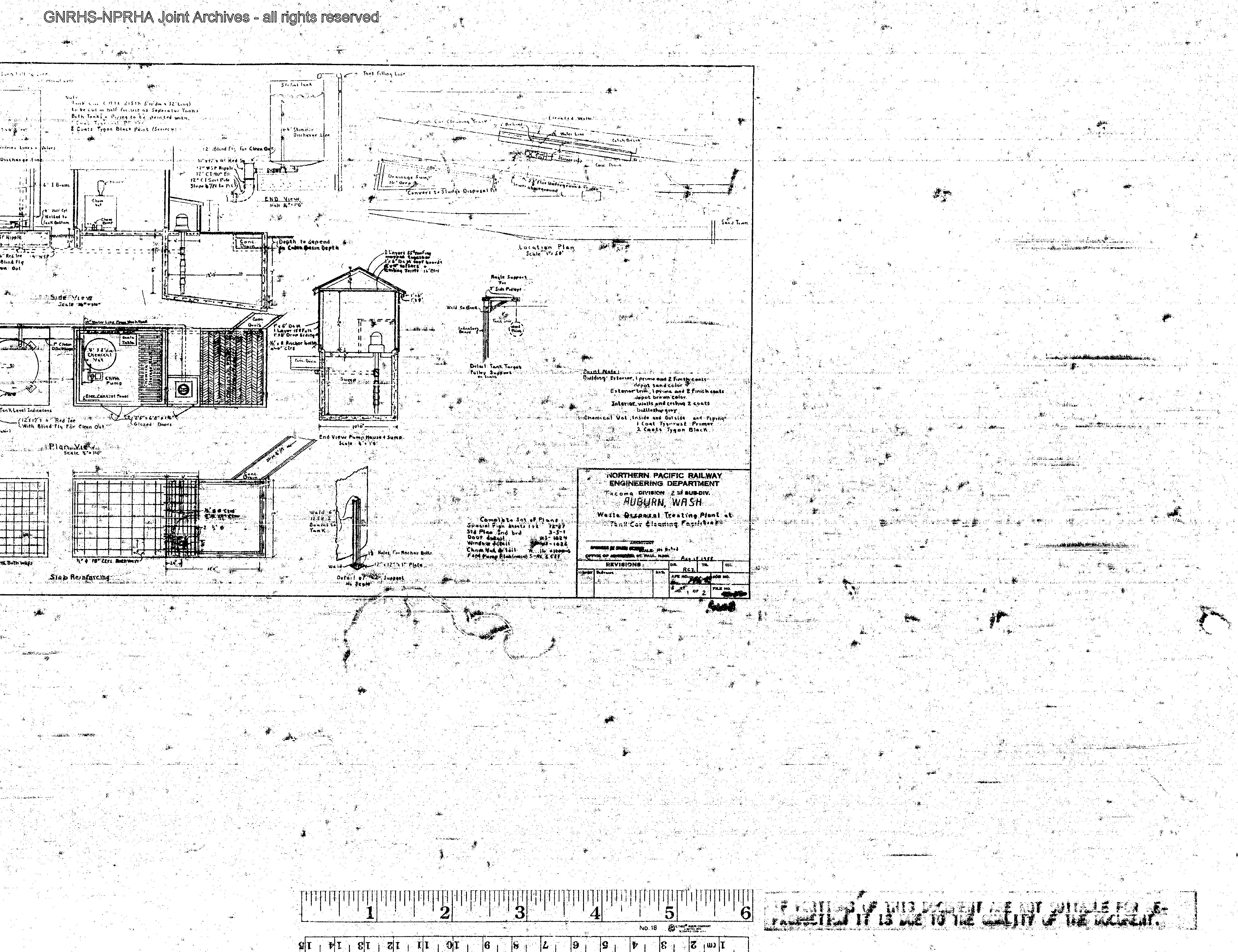 Northern Pacific Engineering Drawing: Car Washing Facilities at Auburn, Washington, prepared in 1955. Burlington Northern File Number 4658, Reference Number 10111, Sheet 001.
