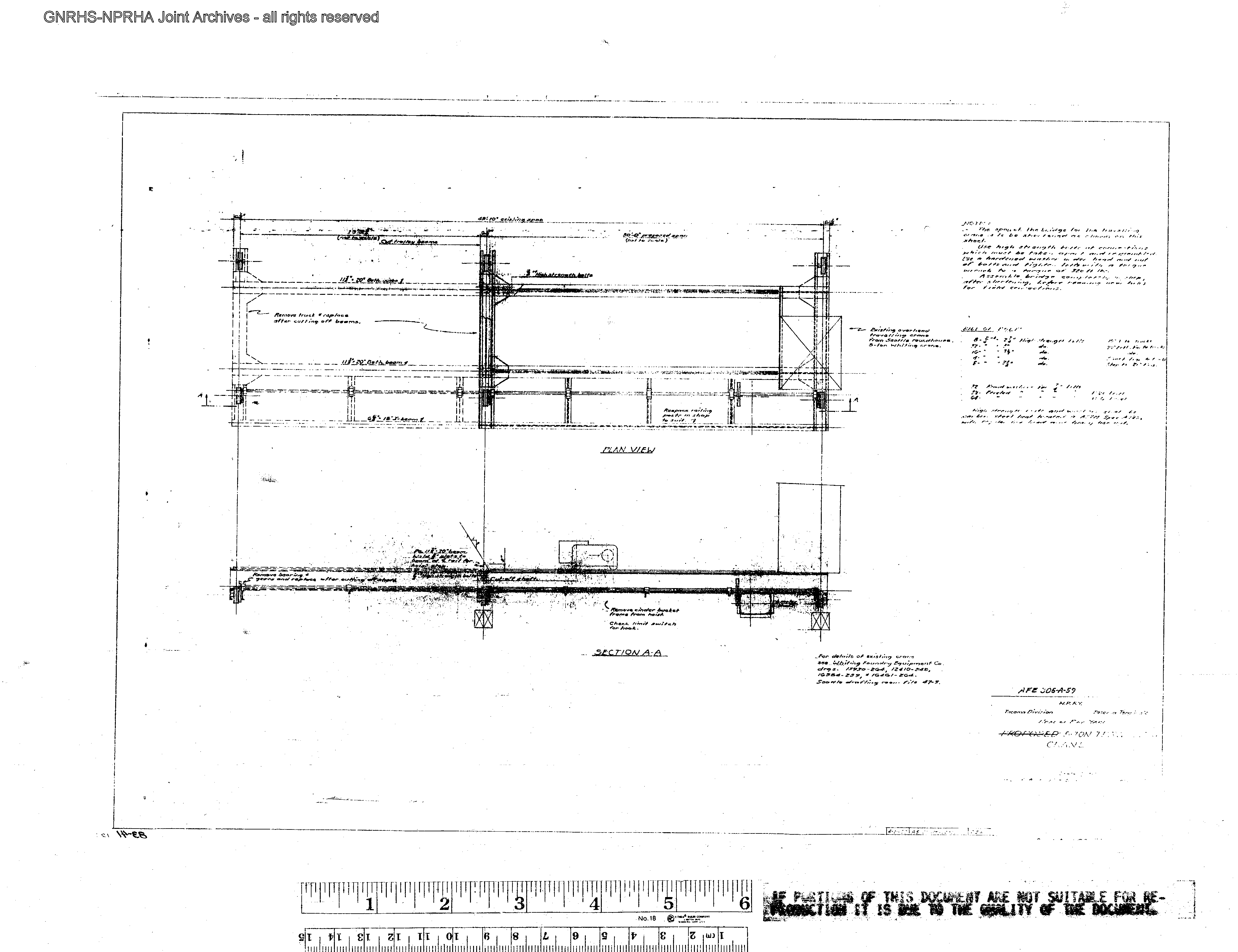 Northern Pacific Engineering Drawing: Crane, 5-Ton at Tacoma, Washington, prepared in 1960. Burlington Northern File Number 4690-4711, Reference Number 10104.