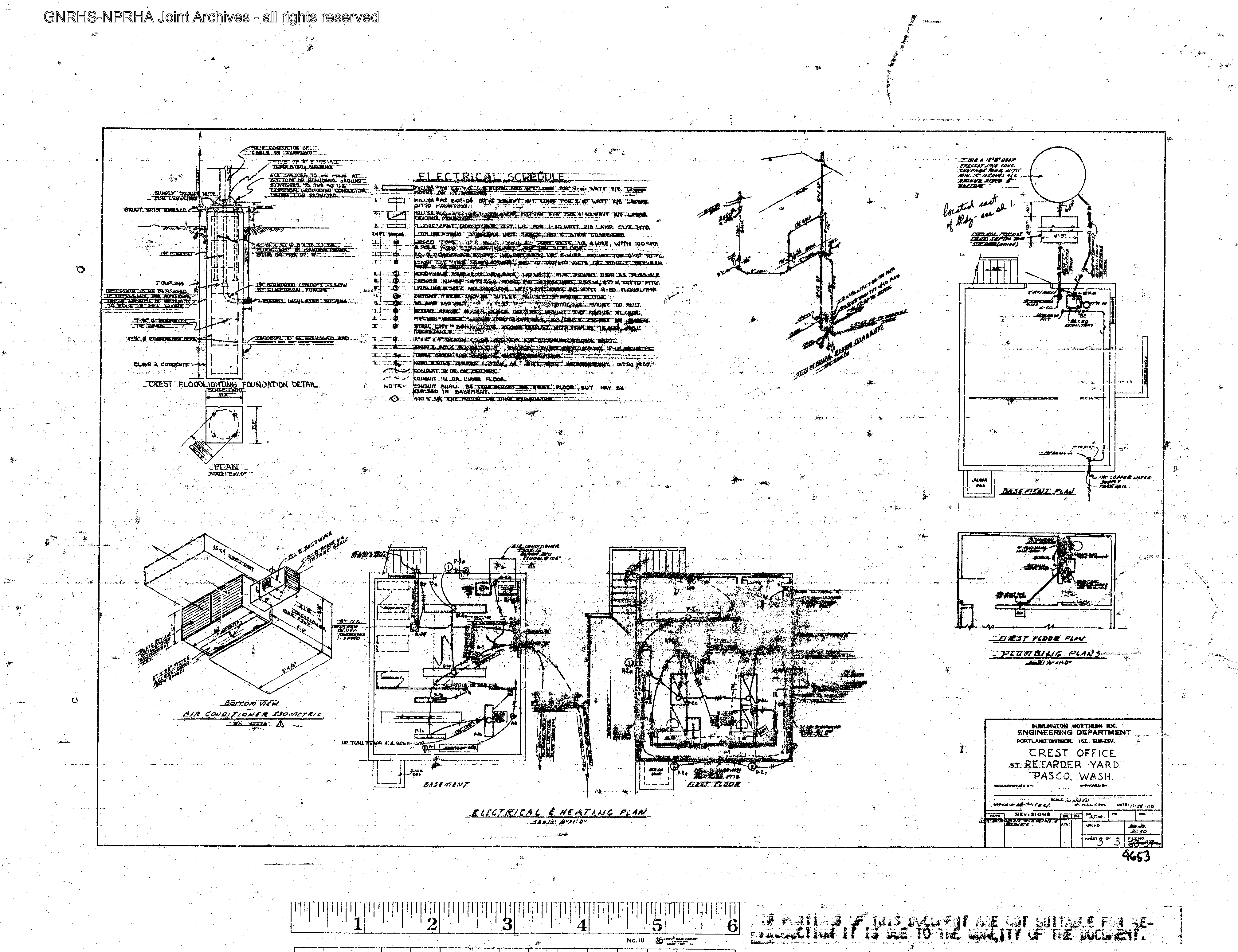 Northern Pacific Engineering Drawing: Crest Office at Retarder Yard at Pasco, Washington, prepared in 1970. Burlington Northern File Number 4653, Reference Number 10104, Sheet 003.