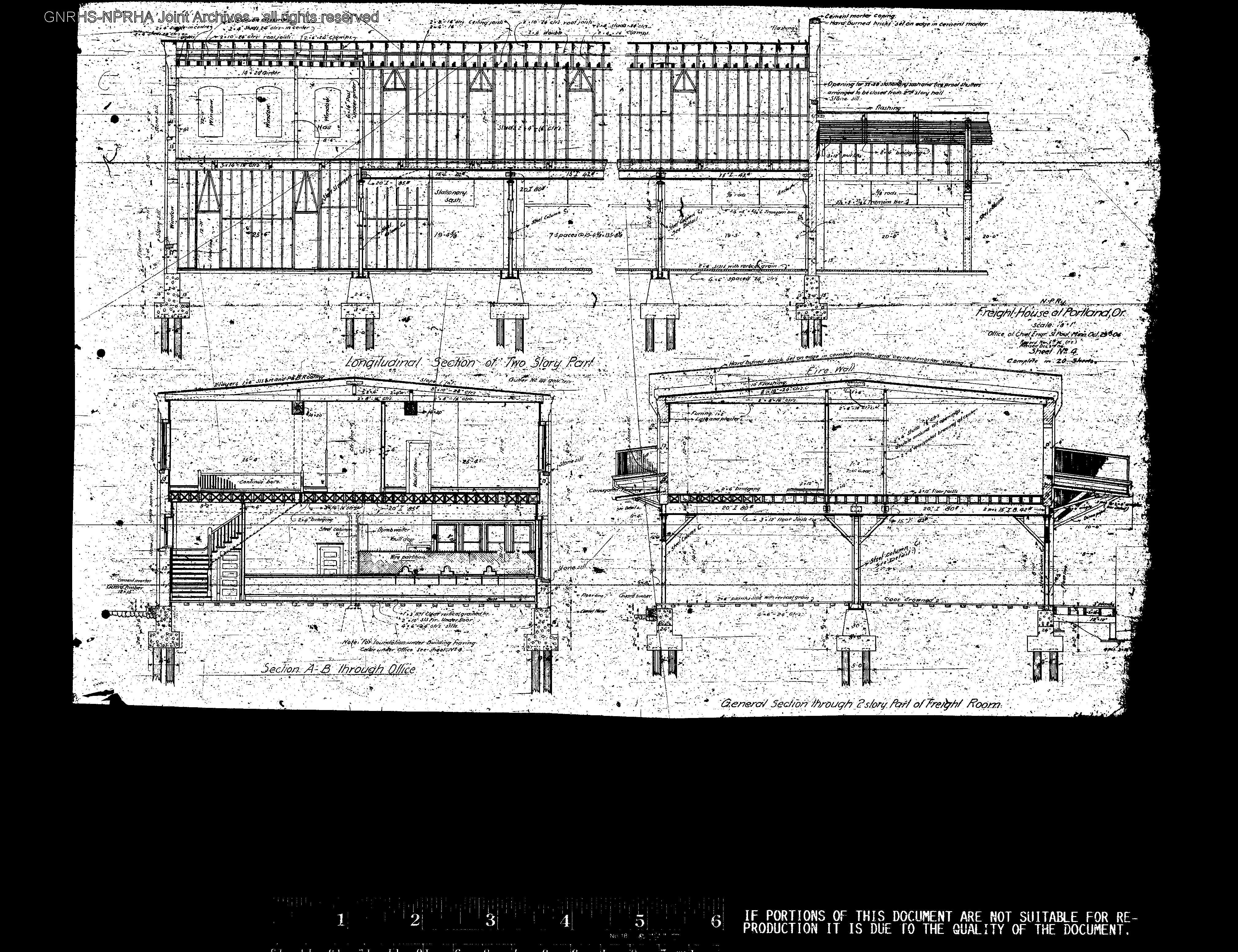 Northern Pacific Engineering Drawing: Freight House at Portland, Oregon, prepared in 1906. Burlington Northern File Number 285-48, Reference Number 10110, Sheet 004.