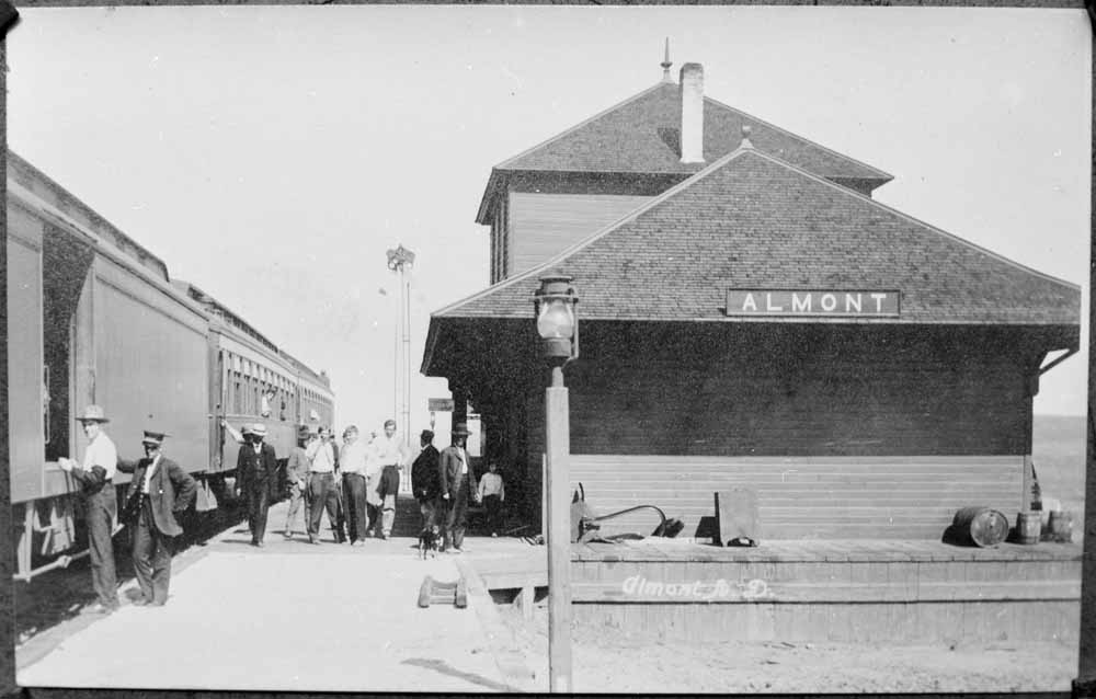 Northern Pacific station at Almont, North Dakota, circa 1915.