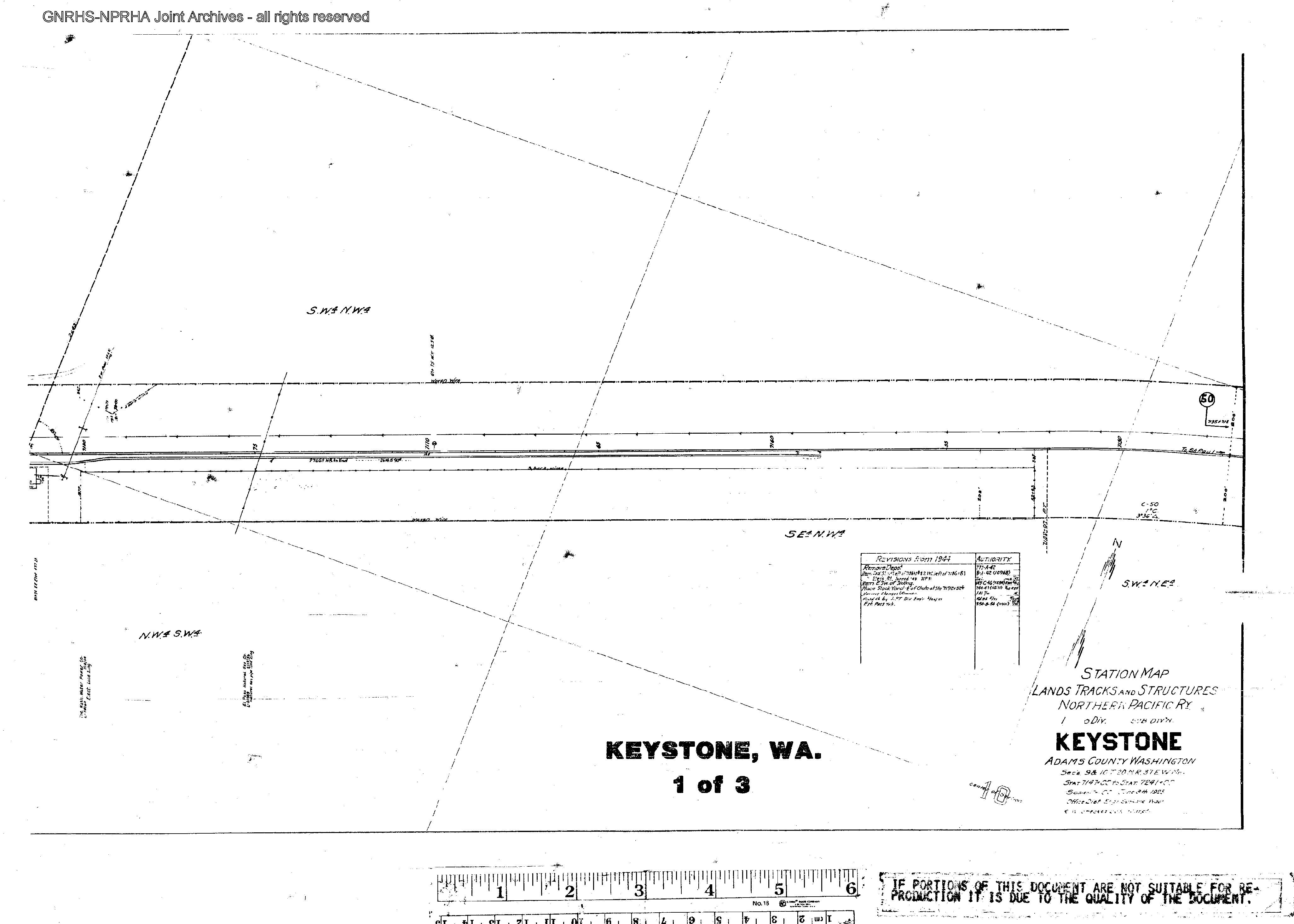 Plat Map of Northern Pacific facilities at Keystone, Washington, June 3, 1925, Sheet Number 1, Line Segment 46, showing the Spokane-Pasco-Spokane, Portland, and Seattle Railway Junction line.