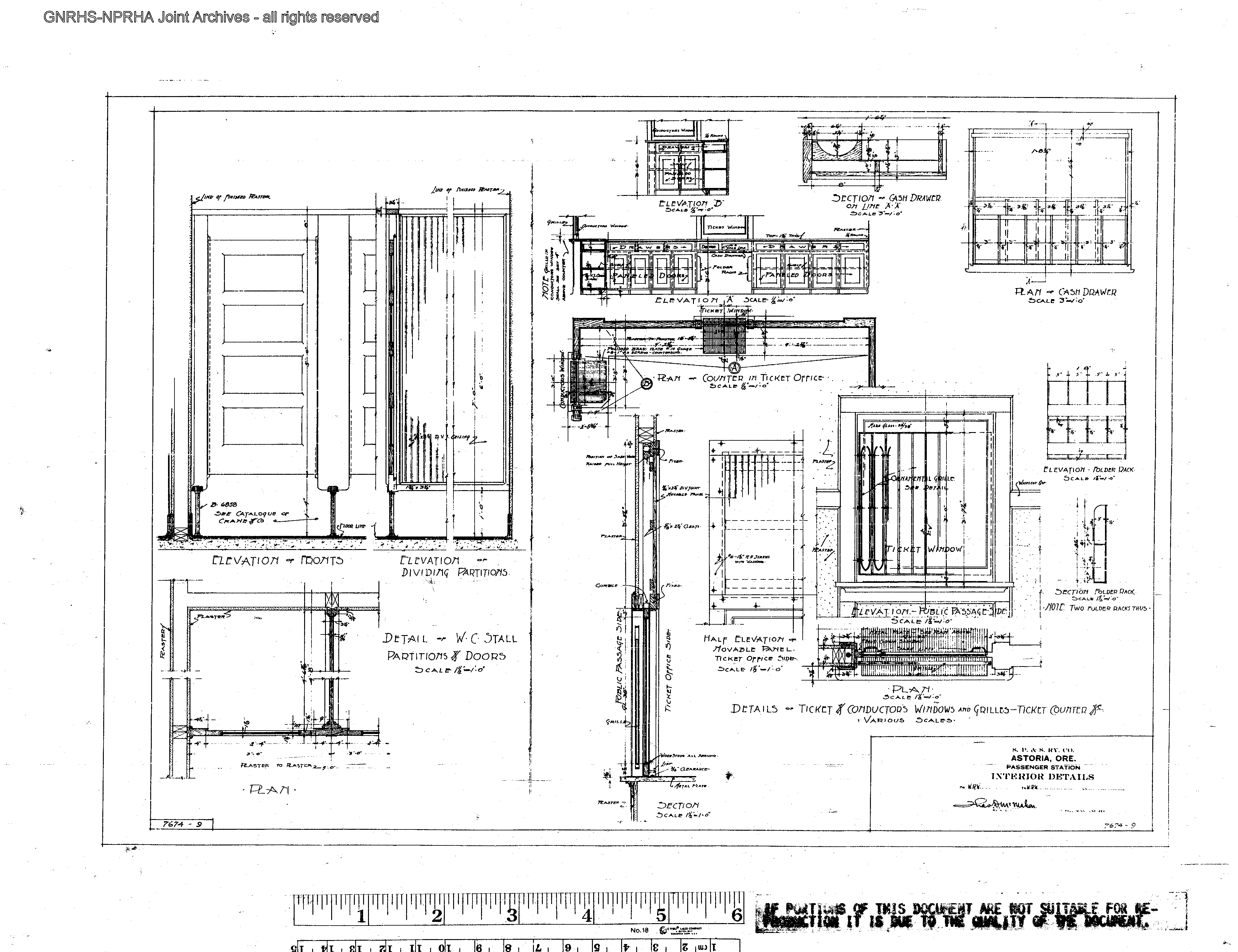 Spokane, Portland, and Seattle Railway Engineering Drawing: Depot at Astoria, Oregon, prepared in 1924. Burlington Northern File Number 7674-9, Reference Number 10106, Sheet 009.