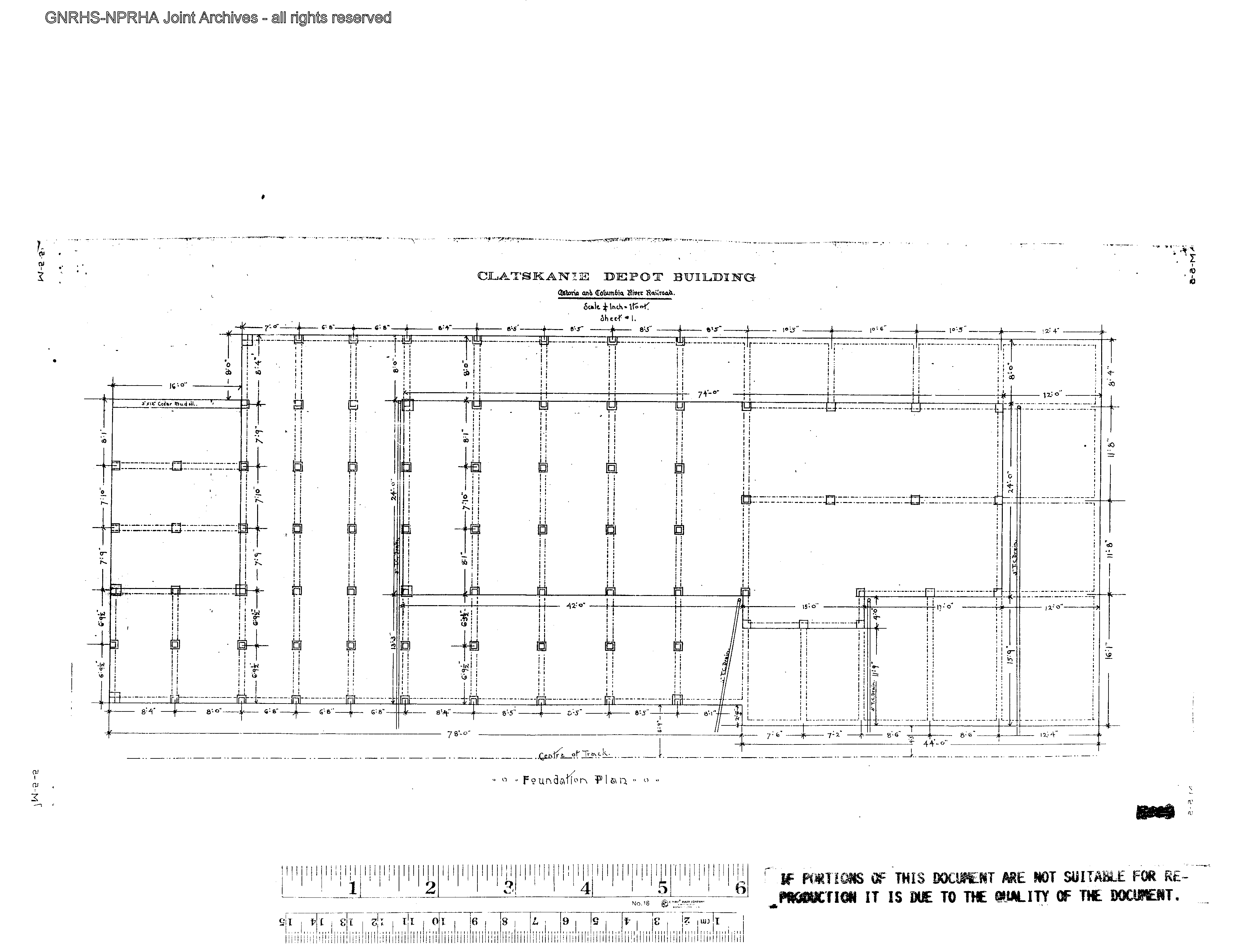 Spokane, Portland, and Seattle Railway Engineering Drawing: Depot at Clatskanie, Oregon, undated. Burlington Northern File Number 12008, Reference Number 101.
