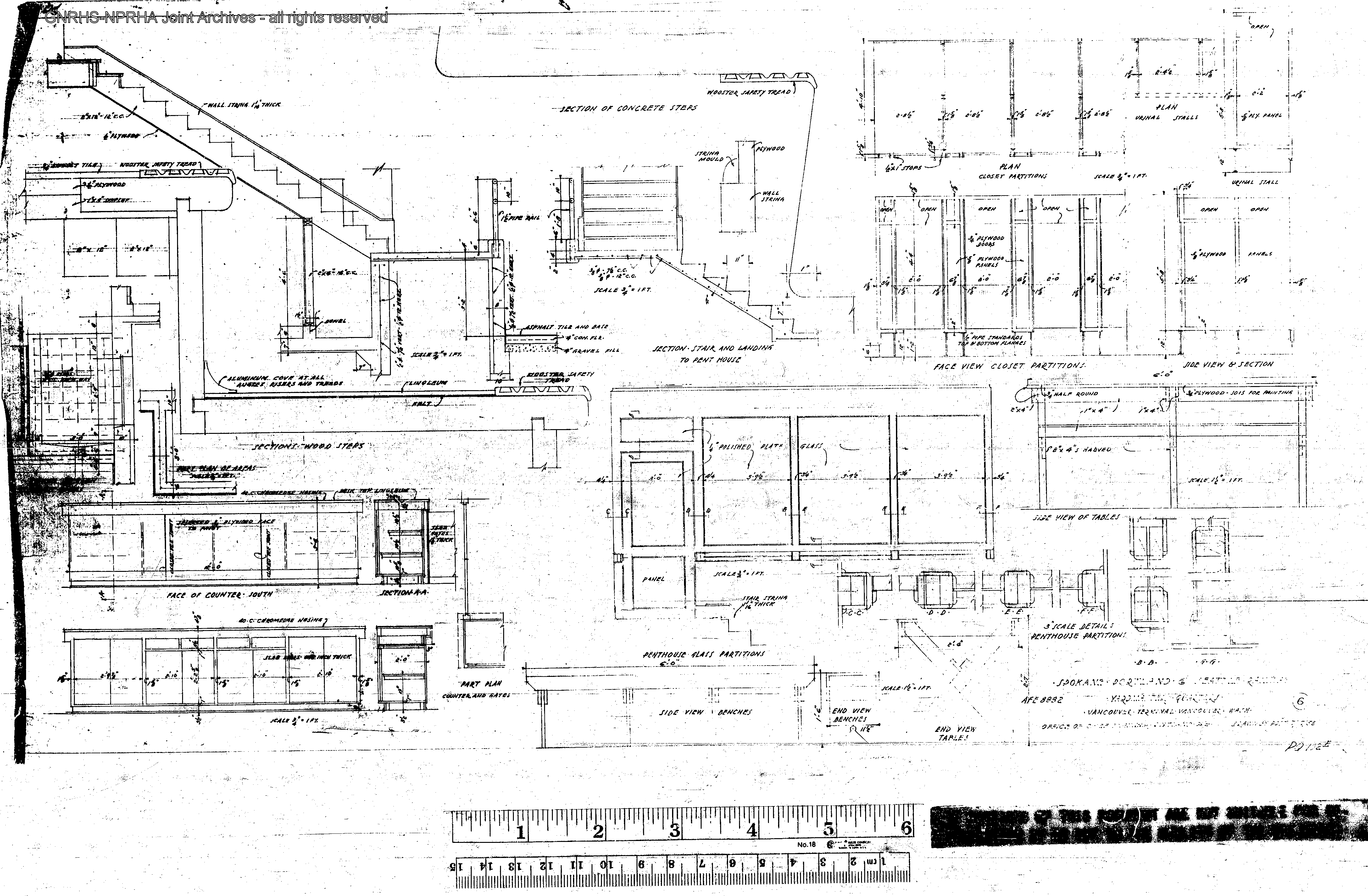 Spokane, Portland, and Seattle Railway Engineering Drawing: Yardmaster's Quarters at Vancouver, Washington, prepared in 1952. Burlington Northern File Number PQ-102E, Reference Number 10107, Sheet 006.
