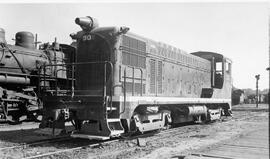 SP&S Number 30, a Class V-1000, on an engine track with steam power behind at Portland, Oregon. Photo by H. H. Arey.