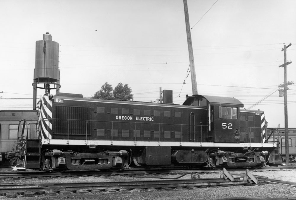 SP&S-OE Number 52, a Class RS-1 assigned to Oregon Electric in the yard at Portland, Oregon on May 21, 1945 from the J. Morris collection.